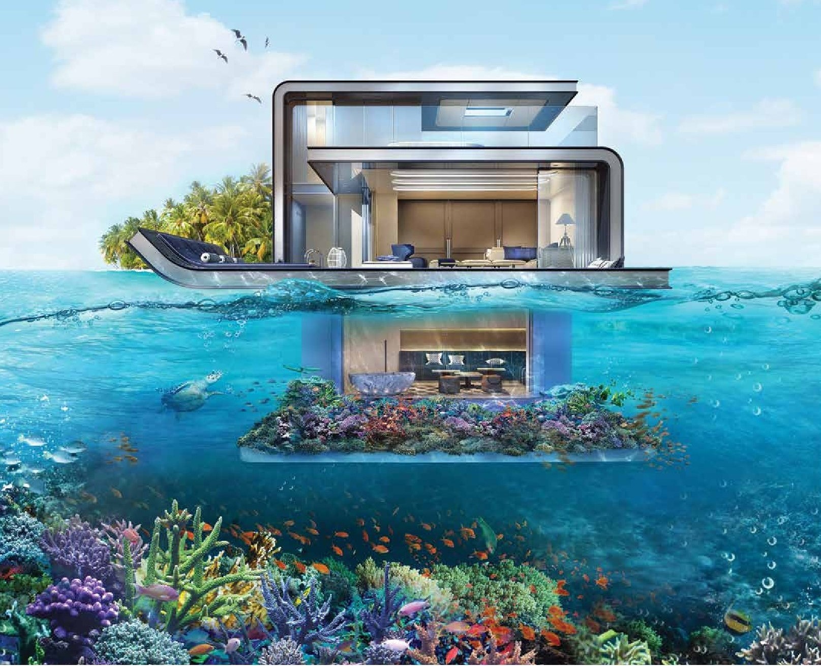 • Indoor/outdoor/underwater living and entertainment spaces